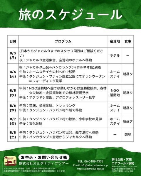 - 8/3~8/8 【ボルネオ島エコツアー!参加者募集中!】