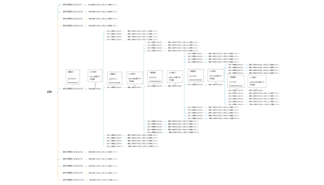 という次の目的に言い換えて、またその目的に対する障害や方法を考えていきます。