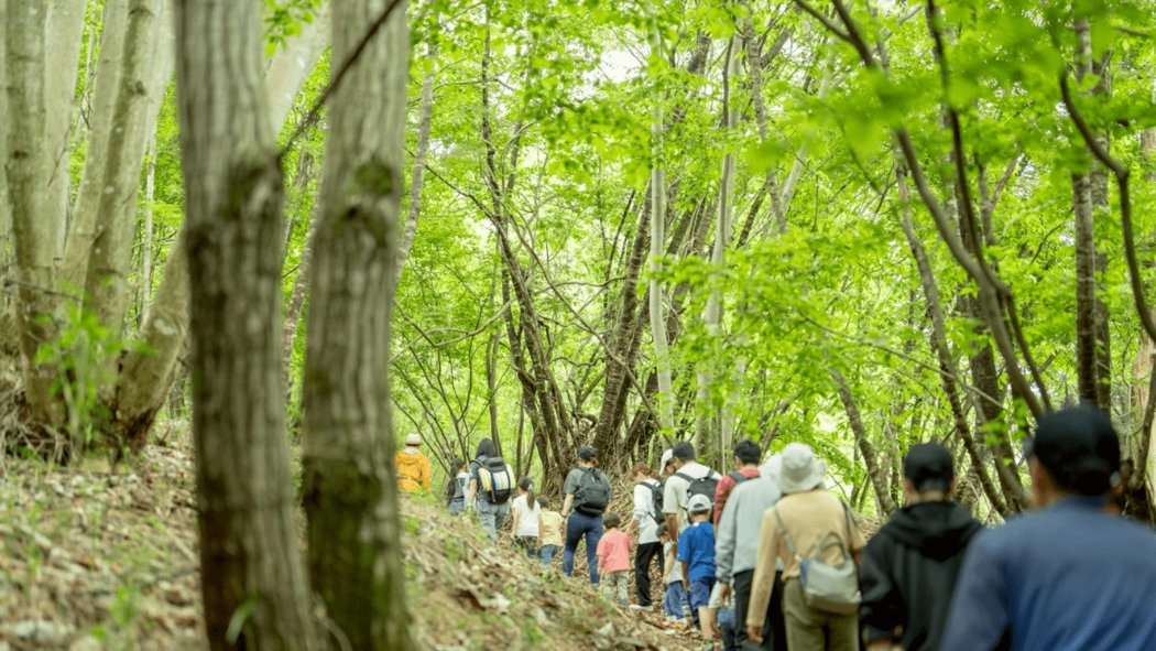 ①イベントに訪れたお子様と、2つのイベント会場の間にある山道(片道25分)を一緒に歩きます