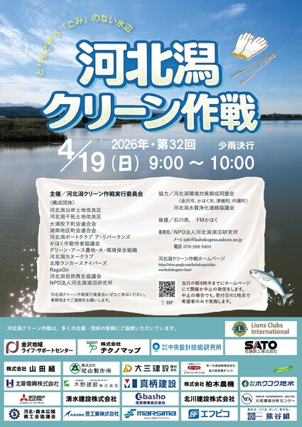 4月に開催する「河北潟クリーン作戦」において、かほく市および湖南大橋地点での運営ボランティアを募集しています。