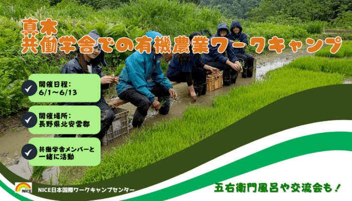 集落の維持のために、共働学舎メンバーと生活を共にしながら有機農業を行うワークキャンプ