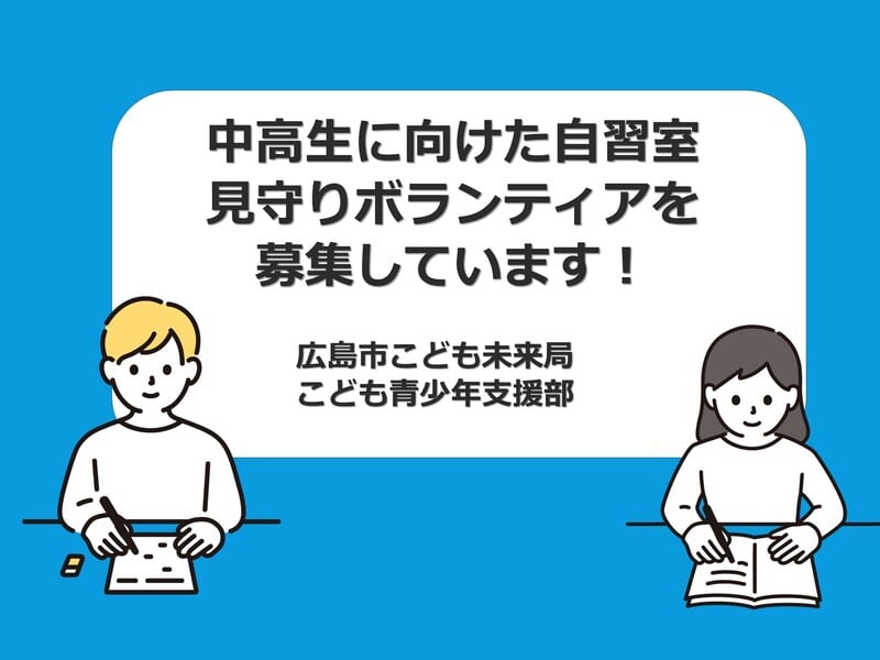 - 頑張る中高生を応援しませんか?自習室の見守りボランティア募集中!
