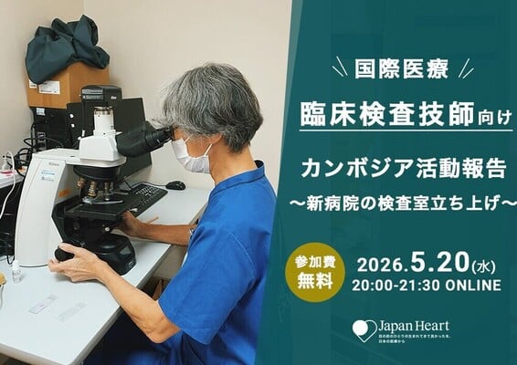 本イベントでは、当センターの検査室の立ち上げに携わったメディカルチーム所属の臨床検査技師より活動報告を行います。