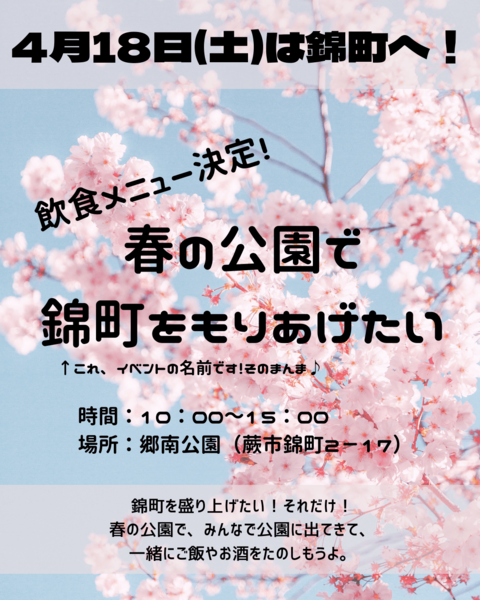 - 4月18日 蕨郷南公園 錦町をもりあげたい 子供向けゲームのボランティアの募集