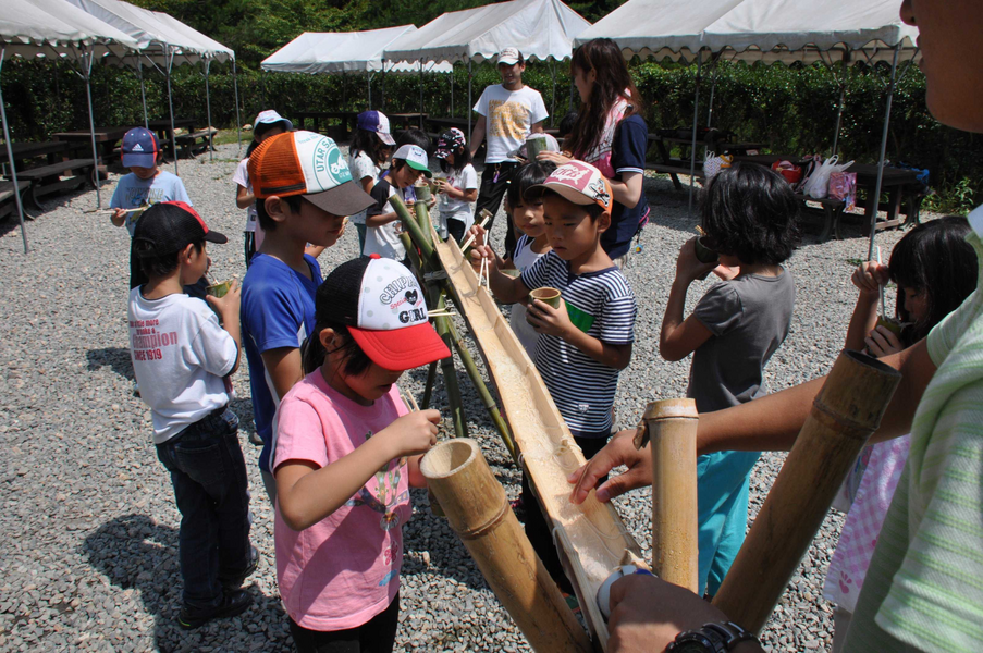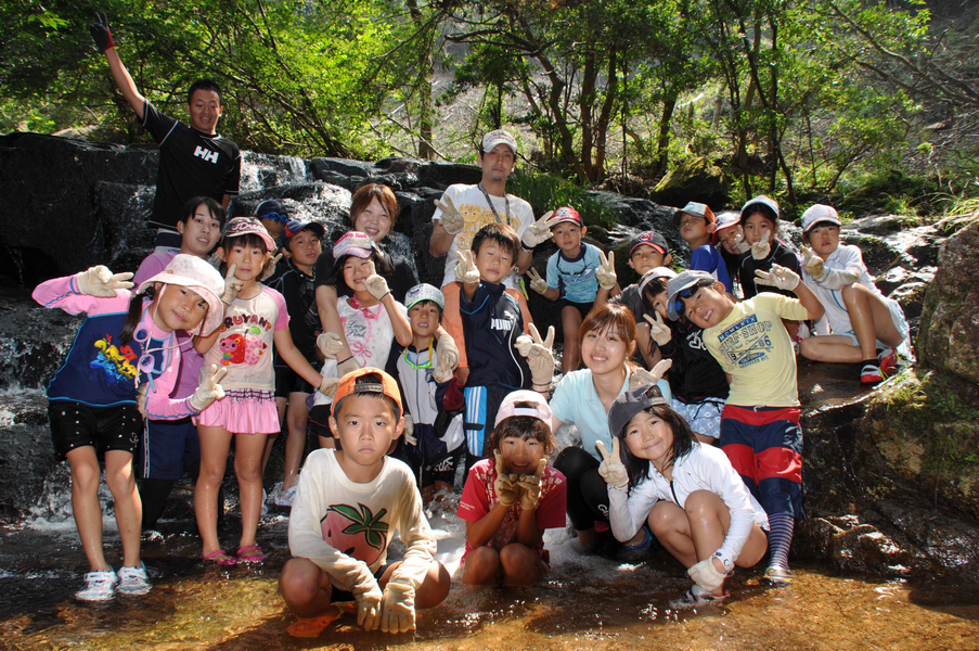 年間を通じて、小学生や親子を対象に川遊び(アマゴつかみ、沢登り)や野外料理など、さまざまな野外活動体験を実施しています。