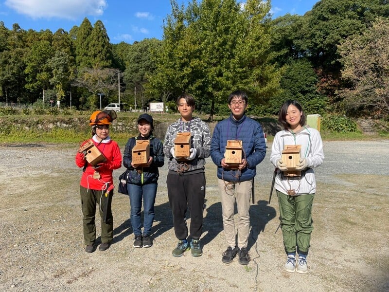 城跡のお膝元の竹林で、竹の間伐を体験。その竹で鳥の巣箱を作ったり、木のお土産づくりなども。