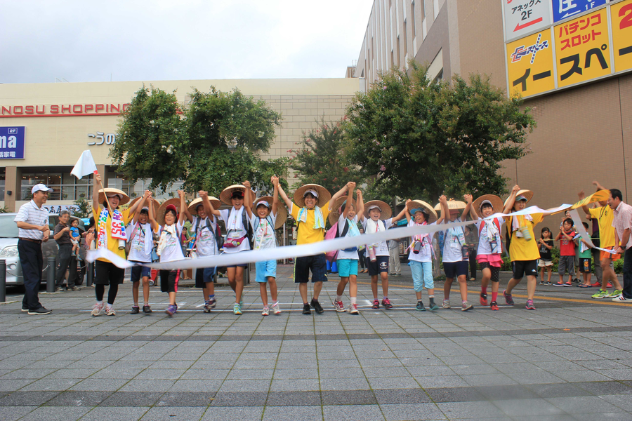 鴻巣市・北本市在住の小学4年生から6年生の男女約70名の参加者を募り、夏休み中の4泊5日の日程で私たちの住んでいる鴻巣市・北本市周辺の100kmの緑多きさきたまの自然豊かなコースや時には陽炎が先に見える厳しい暑さの中の舗装道路一本道を歩き抜く事業です。旅の途中では色々な体験や多くの仲間ができる旅です。概要1.一日約20kmのコースを歩き、5日間で合計100kmを歩きます。2.歩行は男女別に参加者10人程度の班に分けます。3.宿泊地は小学校の体育館や公共施設等を利用し集団にて5日間寝食を共にします。4.歩行中に重要となる給水や食事等は学生・社会人スタッフが中心となりサポートいたします。5.安全・体調第一と考え、事業中は医師とのホットラインの確立や看護師の常時帯同を重視しています。 また急な天候等の自然災害にも事前に雨天用のコースも設定する等、臨機応変に対応できるように情報収集や避難体制を事前に整えています。学生スタッフは、本番までに約週1で集まり話し合いや、楽しい研修をしています。体験談・雰囲気