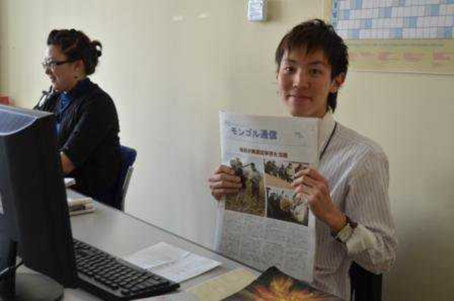モンゴルでのジャーナリズムインターンでは、日本語を使って仕事ができます。通信社では、日本語の新聞を作るセクションで働きました。主な仕事内容は、原稿の校正、取材、記事の執筆でした。前・駐モンゴル日本大使への取材など、日本のインターンではできないような実践的な経験を積めました。自分が書いた記事がこの国営の新聞に載ったときは感動しました。元新聞記者の日本人の方にご指導いただき、記者を目指す僕としては非常に勉強になりました。発展途上で、日本に比べると小規模なモンゴルという国だからこそできる仕事だと思います。