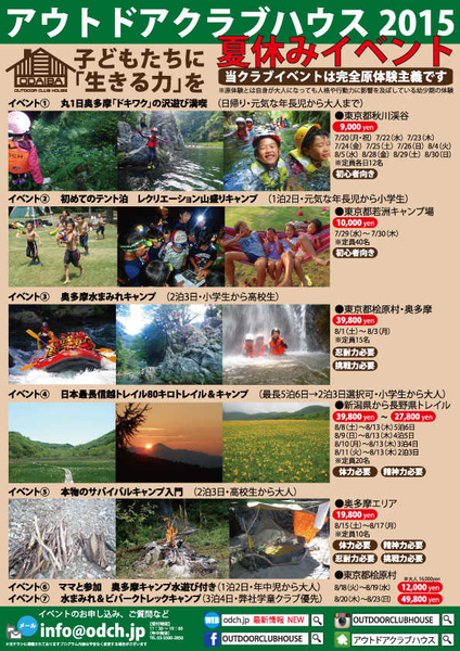 - 2015年夏休み31日間アウトドアイベント三昧、「子どもたちに生きる力を」 東京