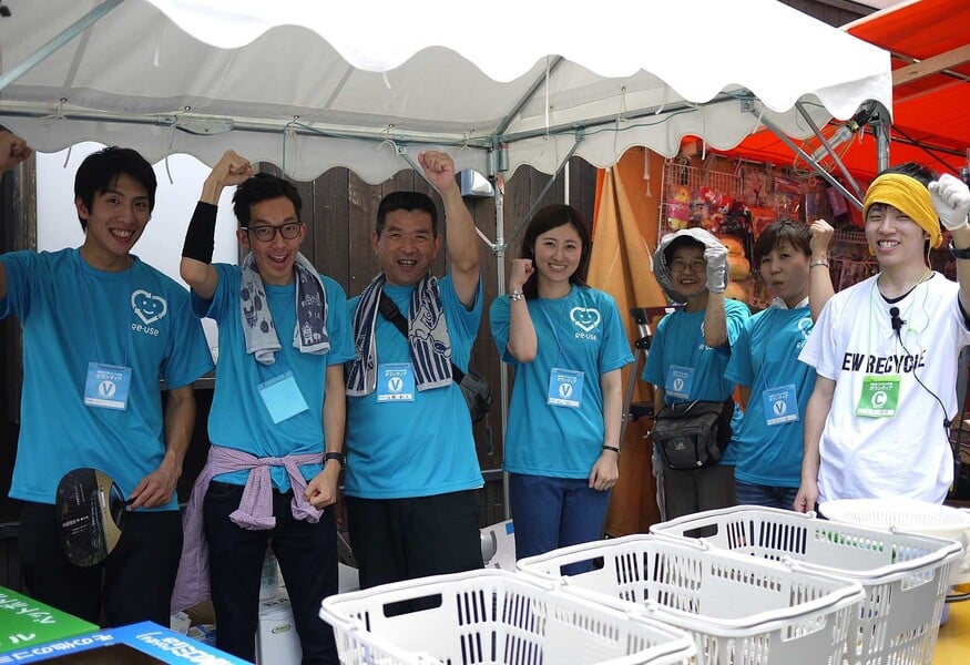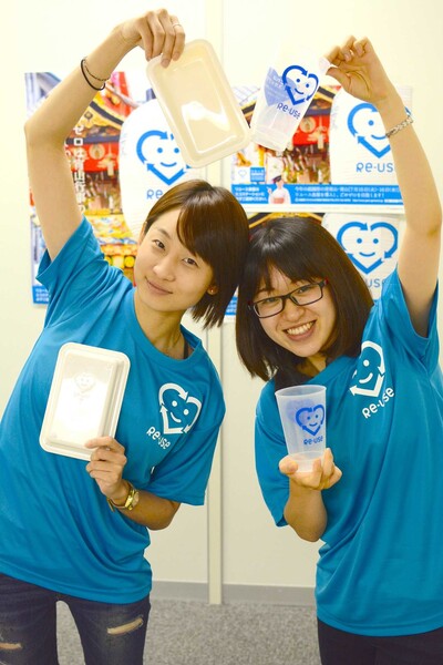そこで、2014年、夜店や屋台の協力のもと、日本初、そして世界初の試みとして、約21万食分の使い捨て食器をリユース食器に切り替える活動を展開しました。具体的には、当日、ボランティアスタッフとして参加した2000名のみなさんと共にエコステーションの設置、ごみの分別作業等を行い、一昨年60トンだった燃やすごみを34トンにまで減量させることが出来ました。昨年から49年ぶりに「後祭り」も復活したことも相まり、来場者数は一昨年より12万人も増加したにも関わらず、ごみの減量を達成出来たことは大きな成果です。しかし、まだまだ課題は山積み。ごみをゼロに近づける本取組をさらに発展させていくため、日夜検討を進めています。