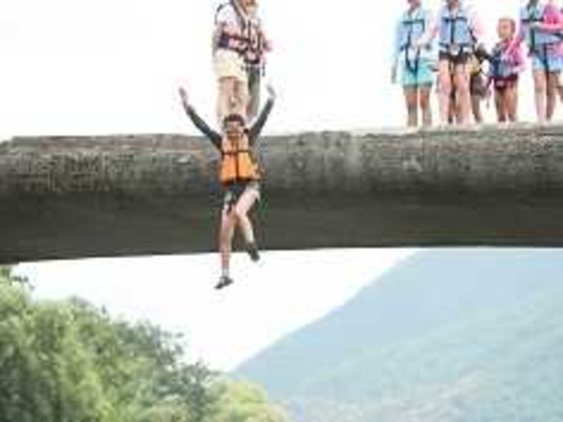 ●沈下橋ダイブ● 四万十川で遊ぶなら、これは絶対に見逃せません!!沈下橋とは、大雨等で水が増えたときに川に沈んでしまうように設計された欄干(人が落ちないように橋についている、柵・てすりのこと!)のない橋のことです☆実際に橋の上から川を見ると、あまりの高さに足がすくんでしまうかもしれませんが・・・1度飛び込んだらヤミツキです!勇気をもって、いざダイブ!と~~っても気持ちいいです!キミは何回挑戦できるかな??!