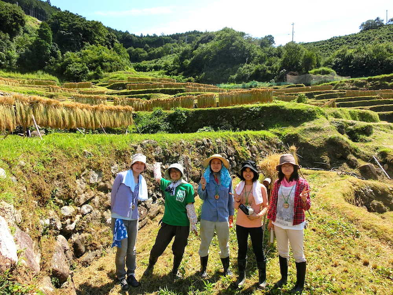 イベントのメインである棚田作業は、稲を刈る→束ねる→ナルに干す、