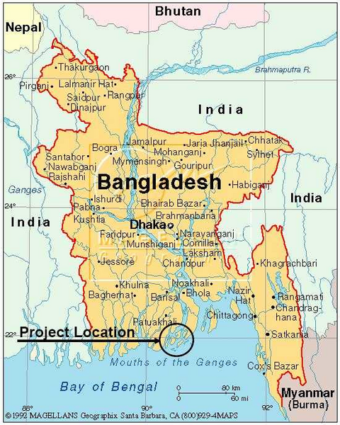 キャンプサイト: 首都ダッカの南、凡そ300㎞。