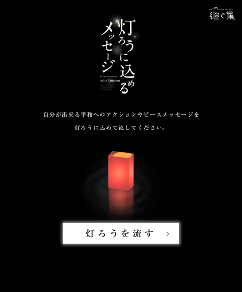 このプロジェクトは、インターネットを介して「平和へのアクション」や「ピースメッセージ」をとうろうに込めて流すというものです。
