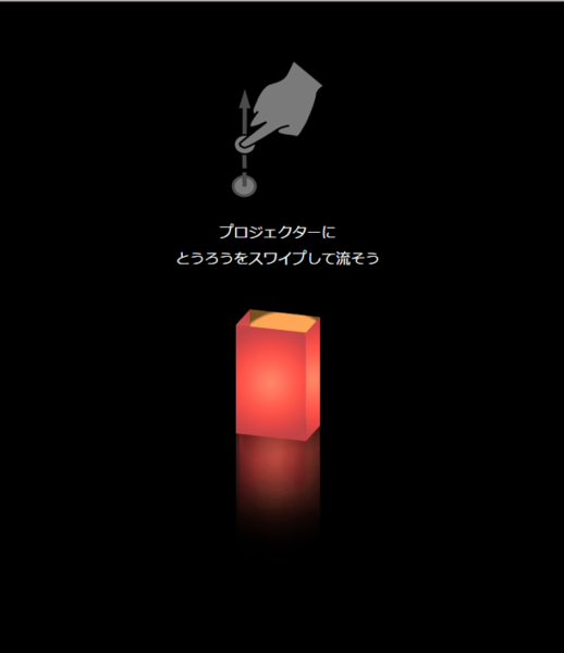 会場に来られた方は設置されたipadからとうろうを作り、スクリーンに向けて押し出すと、自分の作ったとうろうがスクリーンに反映される仕組みになっています。