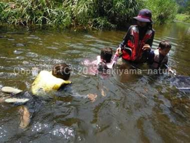 川では子どもたちと一緒に川に入って遊んでもらい、危険がないか監視してもらいます。