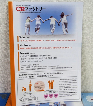 CRファクトリーは、NPO・市民活動・サークルなど非営利組織を対象とした「組織マネジメント/人材育成」の専門家・中間支援組織です。「すべての人が居場所と仲間を持って心豊かに生きる社会」をビジョンに、