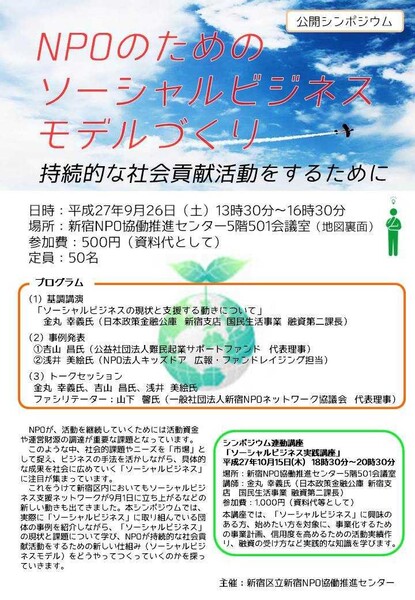 - 公開シンポジウム NPOのためのソーシャルビジネスモデルづくり