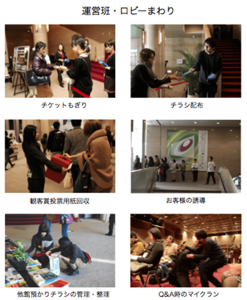 こうした映画祭の運営は、ボランティアスタッフの皆さんのお力なしには成り立ちません!映画業界に興味がある方、仲間と映画祭を盛り上げたいと思う方、 経験やスキルを活かしたい方、なにか新しいことをやってみようと思っている方、この機会にぜひ参加してみませんか?