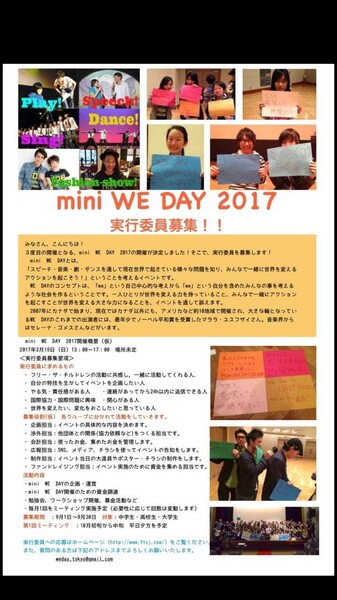 そこで、mini WE DAY 2017の実行委員を募集します!!!