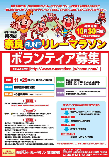 - 第3回奈良RUN×2リレーマラソン ボランティア募集!