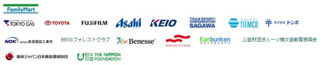東京ガス/トヨタ自動車/富士フイルムホールディングス/アサヒビール/京王電鉄/佐川急便/ティムコ/トンボ/長塚電話工業所/BESSフォレストクラブ/ベネッセコーポレーション/マルハニチロ/一般財団法人 環境文化創造研究所/公益財団法人 一ツ橋文芸教育振興会/公益財団法人 損保ジャパン日本興亜環境財団