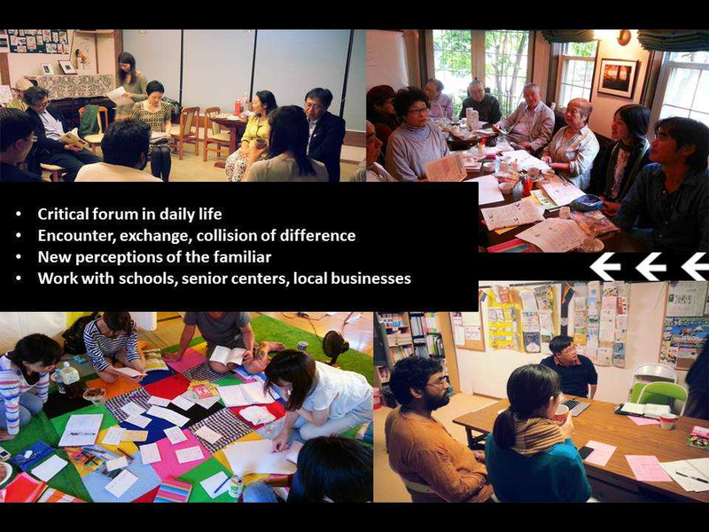 2011 年までは銀座や秋葉原で、2012年からは縁あって杉並区の善福寺地域を拠点に、レジデンスを行ってきました。コミュニティーの外から参加するアーティス トや各分野の専門家は既存の地域に新しい視点を与える役割を担います。これまで、インド、ミャンマー、ラオス、カンボジア、韓国、日本などのメディア・ アーティストや映像作家が地域の人たちとワークショップや作品づくりを通じて交流し、お互いに視野を広げるきっかけをつくってきました。