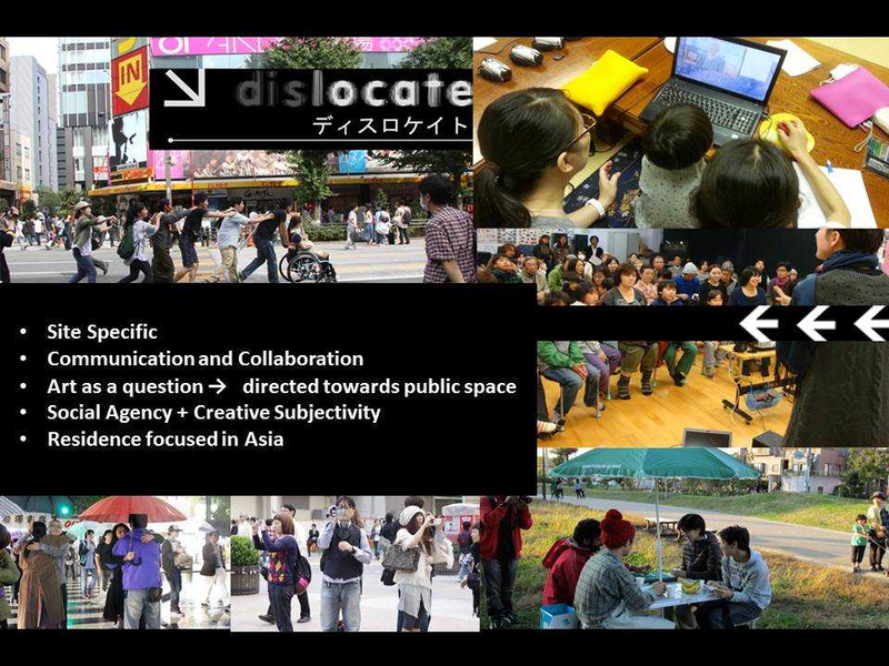 dislocate は、「アート x テクノロジー x ローカリティ」をテーマに、2006年から続けているアート企画です。2009年にレジデンス・プログラムを始めてからは毎年、主にアジアで活躍 する若手アーティストを日本に招へいしています。アーティストたちは1~2か月の滞在期間中、周りのコミュニティと積極的に関わりながら作品やワーク ショップなどを展開していきます。dislocateは、アイデアを出し合い、行動に移す場であり、また互いに認め合い、時には批判し合い、共通性や差異 を見出し、お互いに繋がっていく、一種のパブリック・スペース(公共空間)です。単なるアート・プロジェクトや、まちづくりではなく、いわゆる"アクティ ビズム"でもなく、これまでの"常識"に揺さぶりをかけ、他者を巻き込んで展開していく・・・そんな場であり続けたいと思っています。