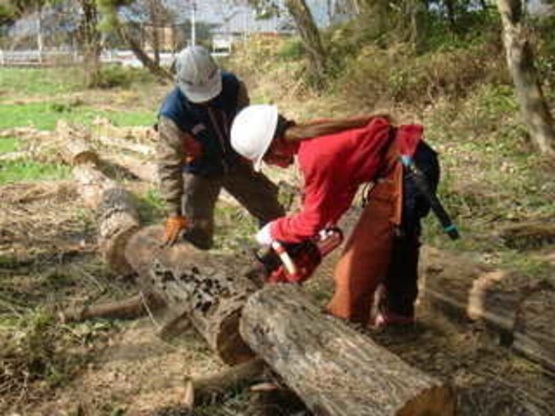 最初の作業は下草刈り。使い慣れない大鎌とノコで草や下枝を刈っていきます。最初のうちはおそるおそる、これ刈っていいですか?と教えていただきながら作業していましたが徐々に大胆に。ズバッと刈ってきれいになっていくのがとても爽快でした。
