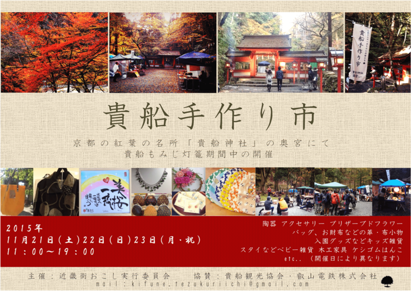 「貴船手作り市」と「貴船音の市」が開催されます。