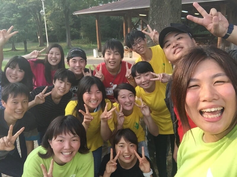先輩、後輩もみんな仲良しで敬語を使わないフラットな関係で子どもたちといっしょに活動しています。