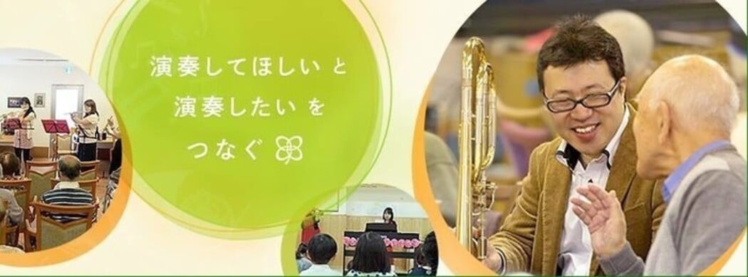 生演奏の楽しさをすべての人に。という想いを理念に掲げ、「演奏してほしい」老人ホーム等と「演奏したい」音楽団体を結び付け、たくさんのコンサートを実現させています。