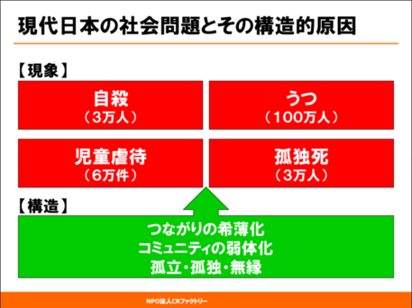 そしてそれらの問題の多くは、学校、職場、地域など従来のコミュニティが弱体化し、