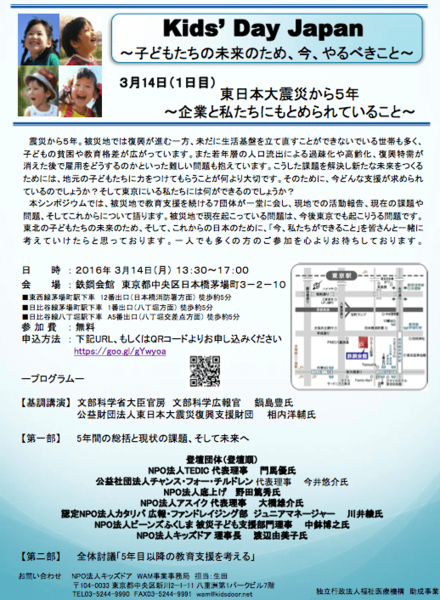 NPO法人TEDIC、NPO法人ビーンズふくしま、NPO法人キッズドア