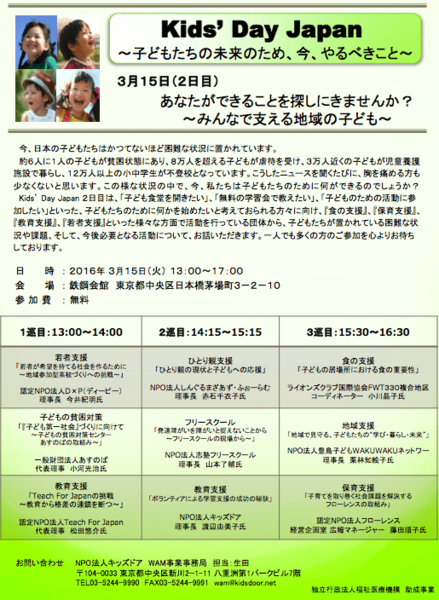 お問い合わせ:NPO法人キッズドア WAM事業事務局 担当:生田