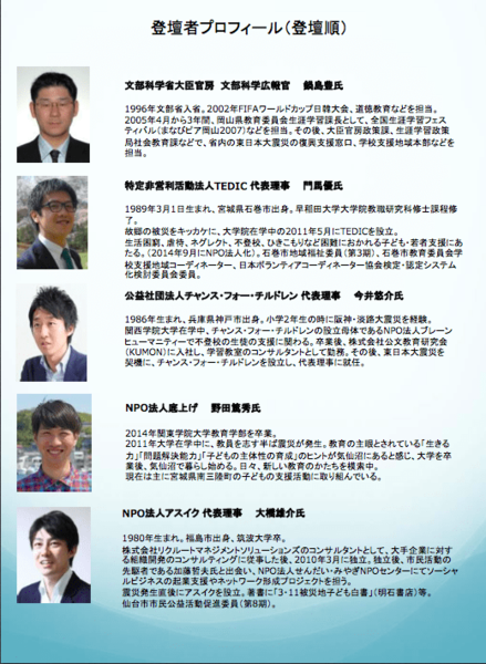 [登壇団体] NPO法人アスイク、認定NPO法人カタリバ、NPO法人底上げ、