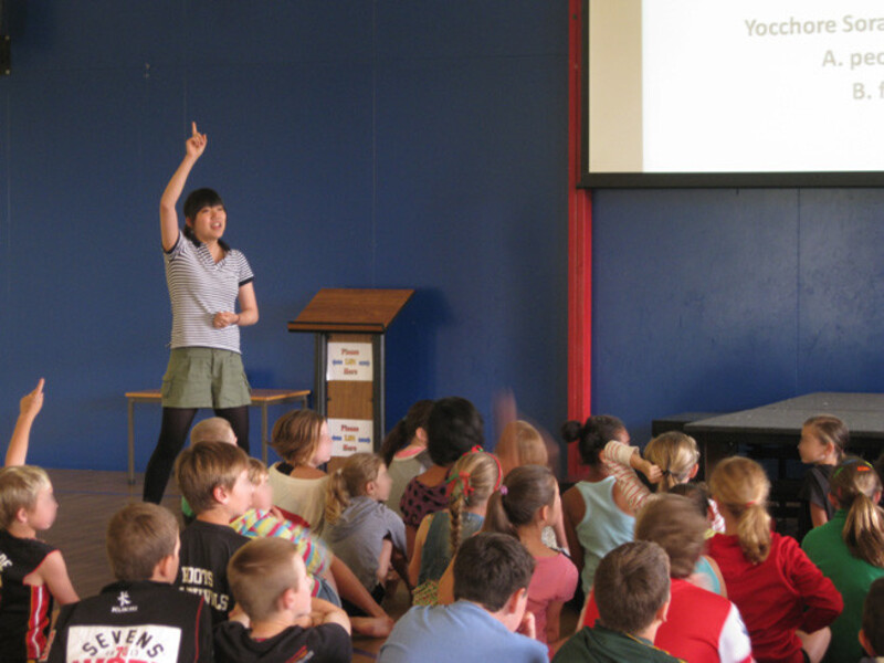 毎日30分くらい時間をもらって、日本○×クイズや紙飛行機飛ばし大会をしました。日本○×クイズはすごく盛り上がりました。折り紙もやりましたが、教えるというよりも作らされたという感じになってしまいました。日本についての質問の時間は、「日本では何味のアイスクリームが一番人気があるか?」というような、変な質問もけっこう多くて、答えるのに困りました。