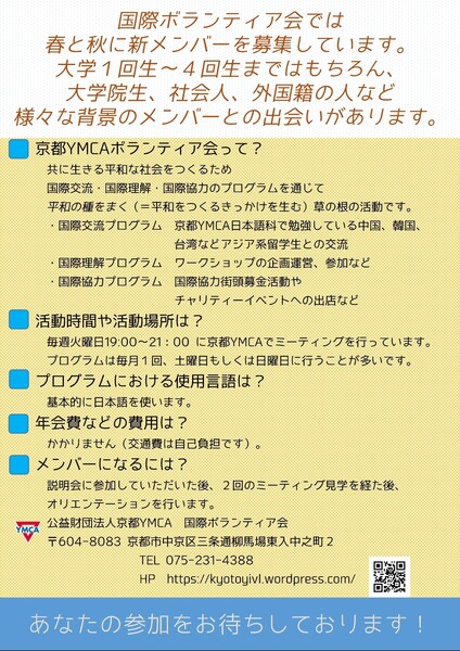 ⇒ 検 索 : 京都YMCA国際ボランティア会