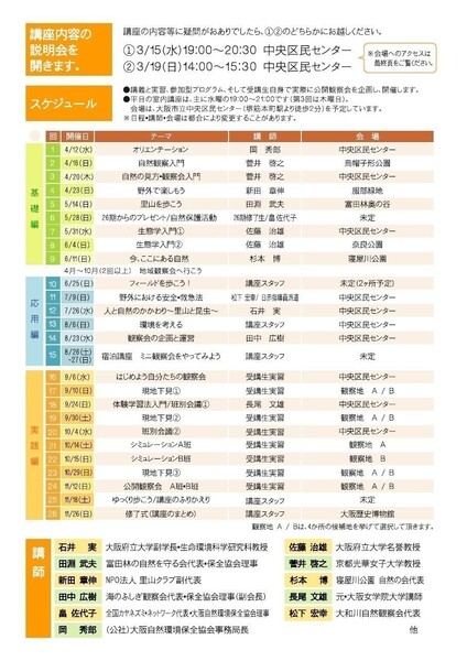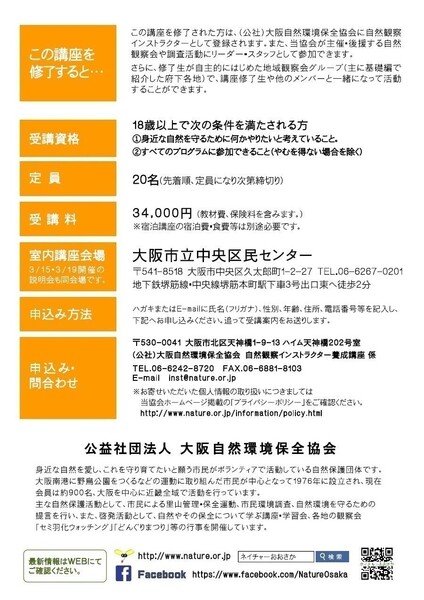 公益社団法人 大阪自然環境保全協会 自然観察インストラクター養成講座係