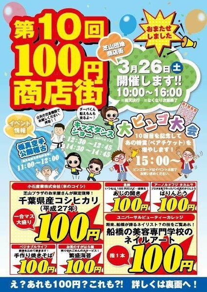 今回は3/26(土)に芝山団地商店街で行われる「第10回100円商店街」に古本市として出店します。集まった人でワイワイ楽しくやれたらと思っています!