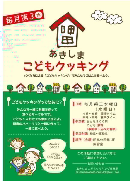 - 新規募集!昭島市のこども食堂「あきしまこどもクッキング」を一緒にやりませんか?