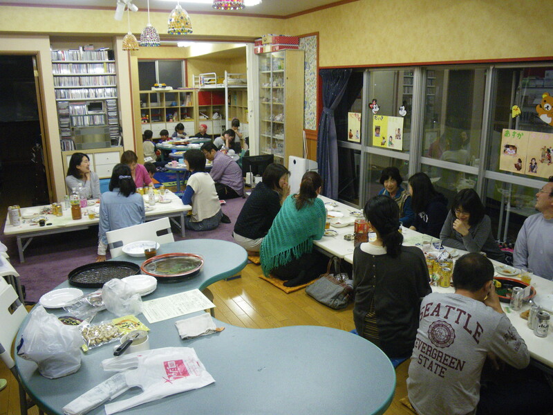 家族交流会 ◆2ヶ月に1回、「コミュニティで子育てする」の実践のため、保護者、子どもたち、ボランティアスタッフが参加する宴会を実施。