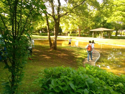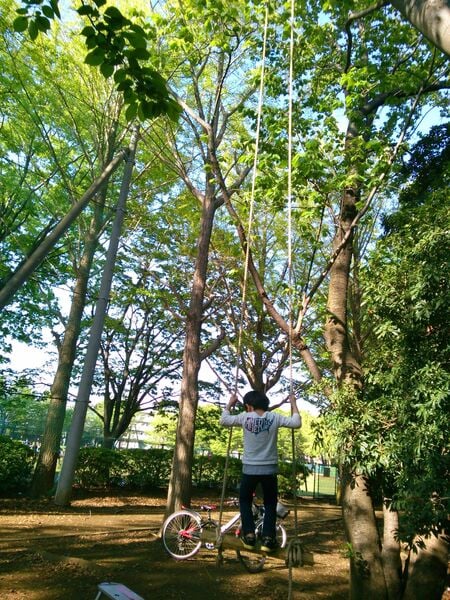 外遊び ◆徒歩5分のところに、一本松公園という広い公園と、花見公園というこじんまりした公園があり、子どもたちの希望で、どちらかに出かけます。