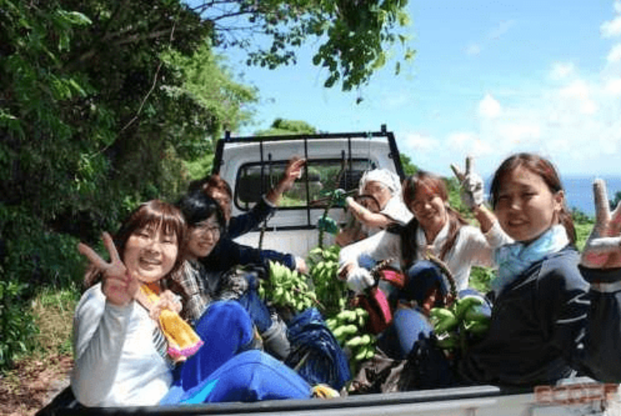 中之島コースでは、小さな離島とは思えないダイナミックな自然の中で、伝統的な果樹栽培の手伝いから新たな特産品栽培の手伝いまで幅広い体験ができます。