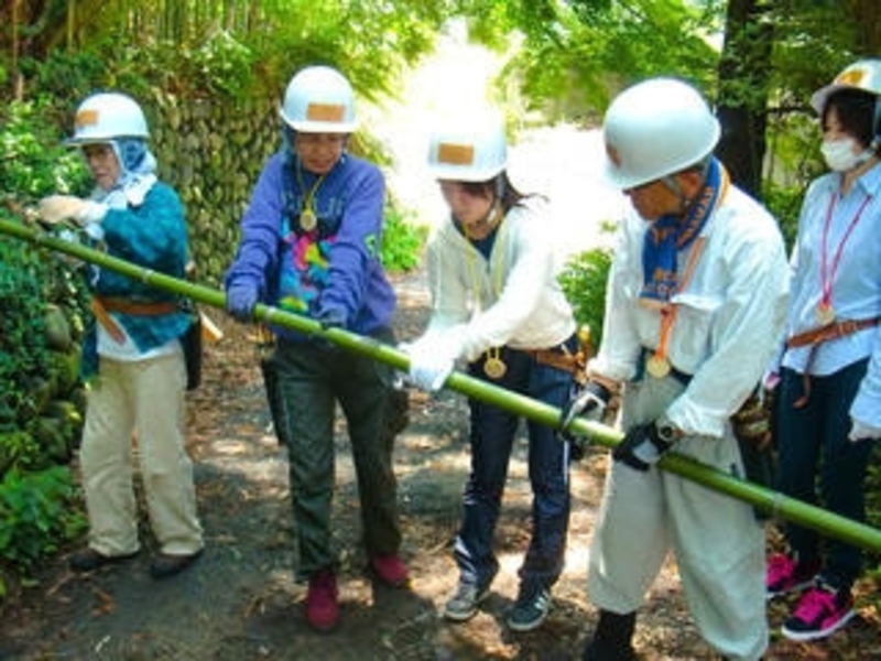 ベルトを腰に巻き、準備が整ったらさっそく班ごとに分かれて竹を伐採していきました。