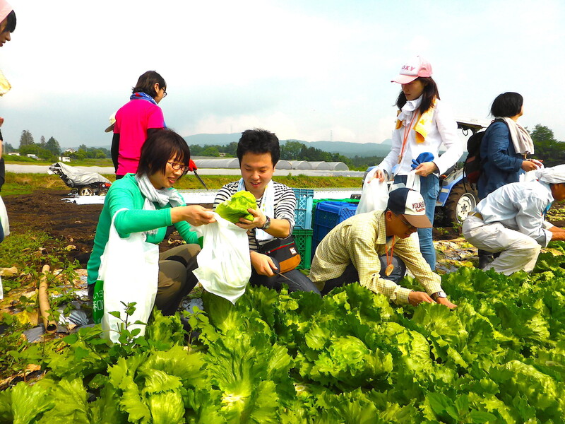 その後は、近くのレタス畑に行ってレタスの収穫体験をしました。辺り一面見渡す限り広大な畑で