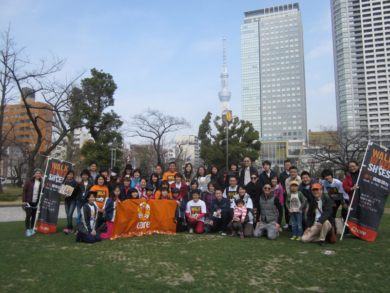 歩く国際協力「Walk in Her Shoes」とは、歩くことが社会貢献につながる「チャリティウォーク」で、途上国の女性や女の子たちが水汲みや薪運びのために毎日歩く8,000~10,000歩(約6キロ)という距離を実際に歩いて体感しながら、 途上国の人たちが直面する現実と課題を考えようという、CAREのグローバルキャンペーンです。