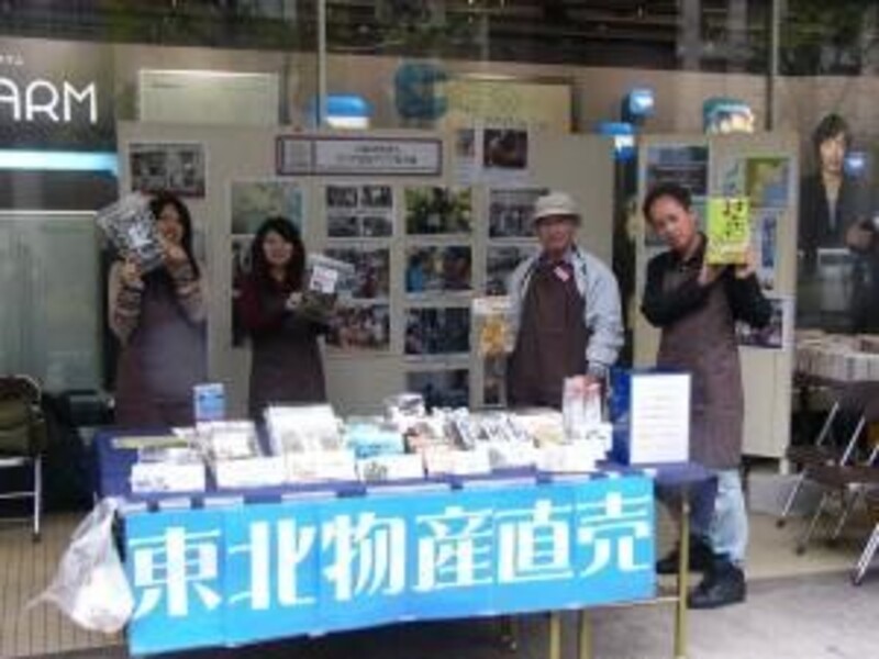 南三陸直売所「みなさん館」からの海産物(わかめ、めかぶなど)を路面販売し、現地の復興支援の一助にします。