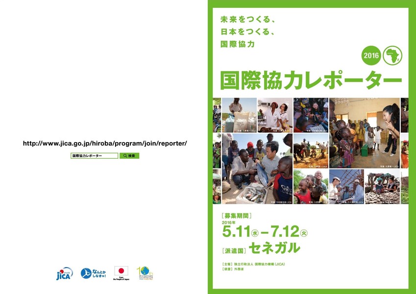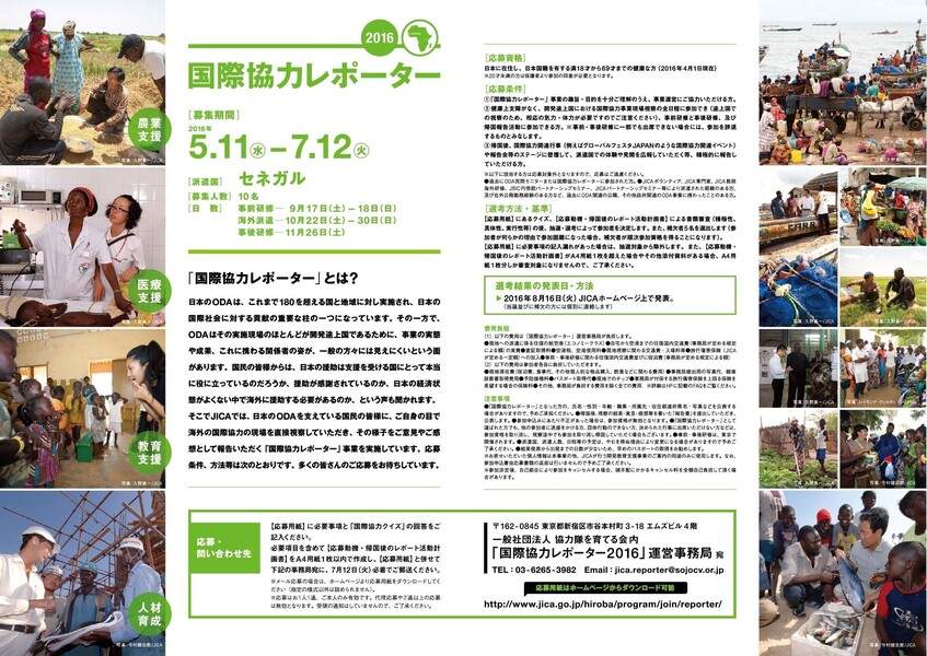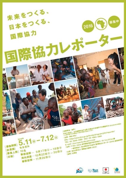 JICAでは、全国から10名の方々にレポーターとなっていただき、ODAやNGOの現場(セネガル)を視察する「国際協力レポーター2016」の参加者を募集しています!