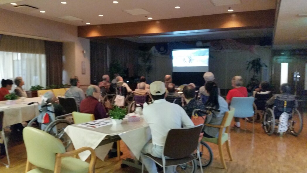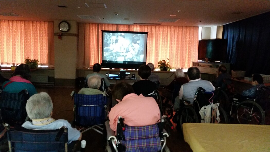 上映会を楽しみに上映時間前からスタンバイの入居者様多数。